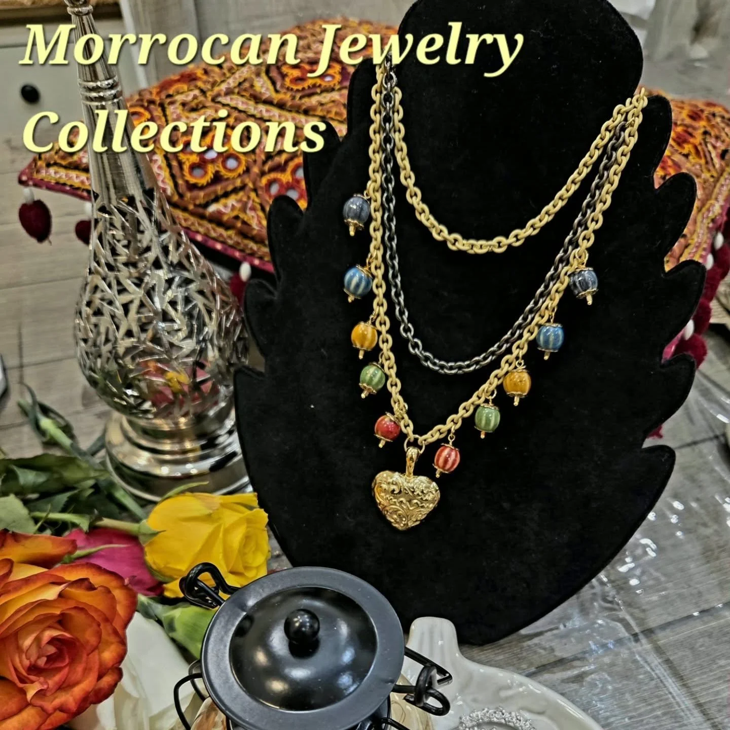 Moroccan jewellery displays beautiful, colorful craftsmanship and detailed designs inspired by its rich culture.